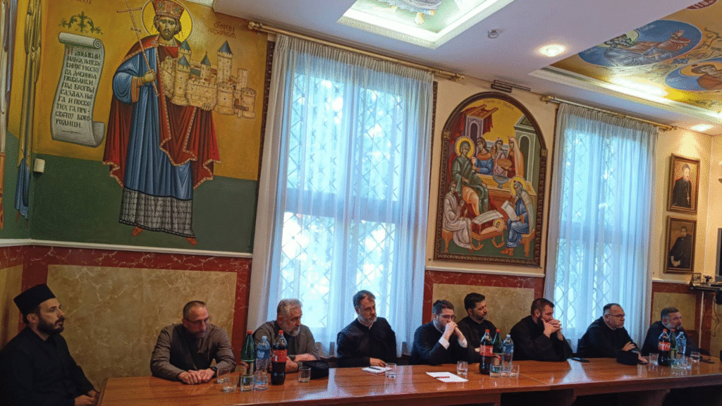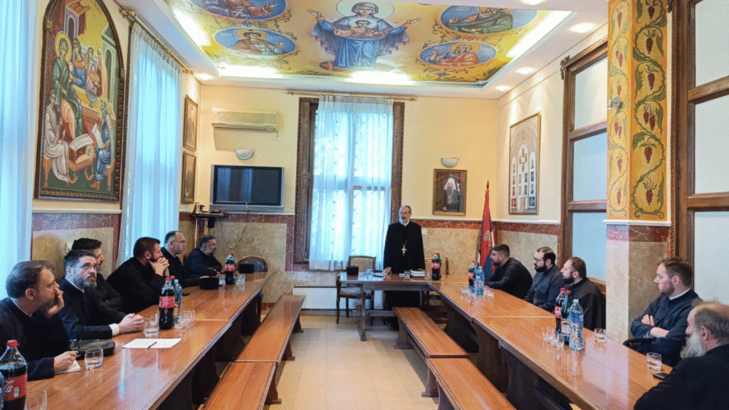 On Tuesday, May 27, 2025, a specialist mentoring lecture was held at the parish hall of the Church of the Nativity of Saint John the Baptist in Voždovac. The event was intended for clergy of the Archdiocese of Belgrade–Karlovci with up to three years of priestly service. The topic of the meeting was: “The Funeral Service – Liturgical Practice, Practical Advice, and Providing Comfort to Parishioners.” Twenty priests participated in the lecture.