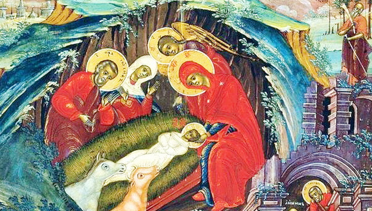 On the eve of the Nativity, in the year 518, during an all-night vigil at the Church of Blachernae, this deacon was assigned to read the kathismata. He read so poorly that the typikon reader interrupted him and replaced him with another, which provoked further mockery from the rest of the clergy. Humiliated, he withdrew to the side and sat in one of the stasidia. Weeping, he prayed to the Most Holy Theotokos until he was overcome by sleep. In a dream, the Most Holy Theotokos appeared to him and gave him a scroll to swallow. As soon as he swallowed it, he awoke. The vigil was still in progress; the chanters were just concluding the sixth ode of the canon of the Matins service of the Nativity of Christ. To the astonishment of all, the deacon stepped forward into the middle of the church and chanted a hymn hitherto unknown: “Today the Virgin gives birth to the Transcendent One, and the earth offers a cave to the Unapproachable. Angels glorify Him with the shepherds in hymns, and the Magi journey with the star; for for our sake a little Child is born, the pre-eternal God.”