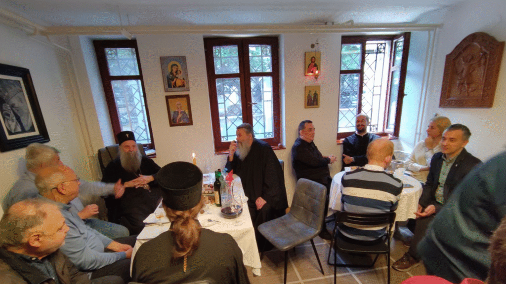 The celebration continued in a spontaneous and informal dialogue, as members of the Missionary Department exchanged views with Patriarch Porfirije on various missionary topics and received insightful suggestions from him. In addition to the clergy of the Archdiocese, the event was attended by professors from the Belgrade Theological Seminary of Saint Sava and representatives of church media. Among the clergy from other dioceses of the Serbian Orthodox Church was Protopresbyter-Stavrophor Rade Radan from the Metropolitanate of Australia and New Zealand, who shared his missionary experiences from the Fifth Continent in conversation with the Patriarch and those present. The event was also attended by several foreign nationals from Australia, the United States, Russia, and Mexico, who are also regular attendees of the English-language lectures organized within the NevskyTalks project.